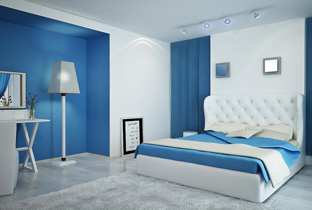 Màu xanh nước biển: có thể là xanh nước biển, xanh da trời, xanh nhạt…Với sắc xanh này sẽ đem lại cho bạn cảm giác tươi mới, yên bình và thể hiện những ước mơ, khát vọng luôn căng tràn. Đây chính là một màu lạnh, thể hiện được sự cá tính, mạnh mẽ và khi thời tiết nóng nực mà bạn bước vào căn phòng này sẽ sẽ giúp bạn cảm thấy thoải mái hơn, hạ nhiệt được cái nóng phần nào.